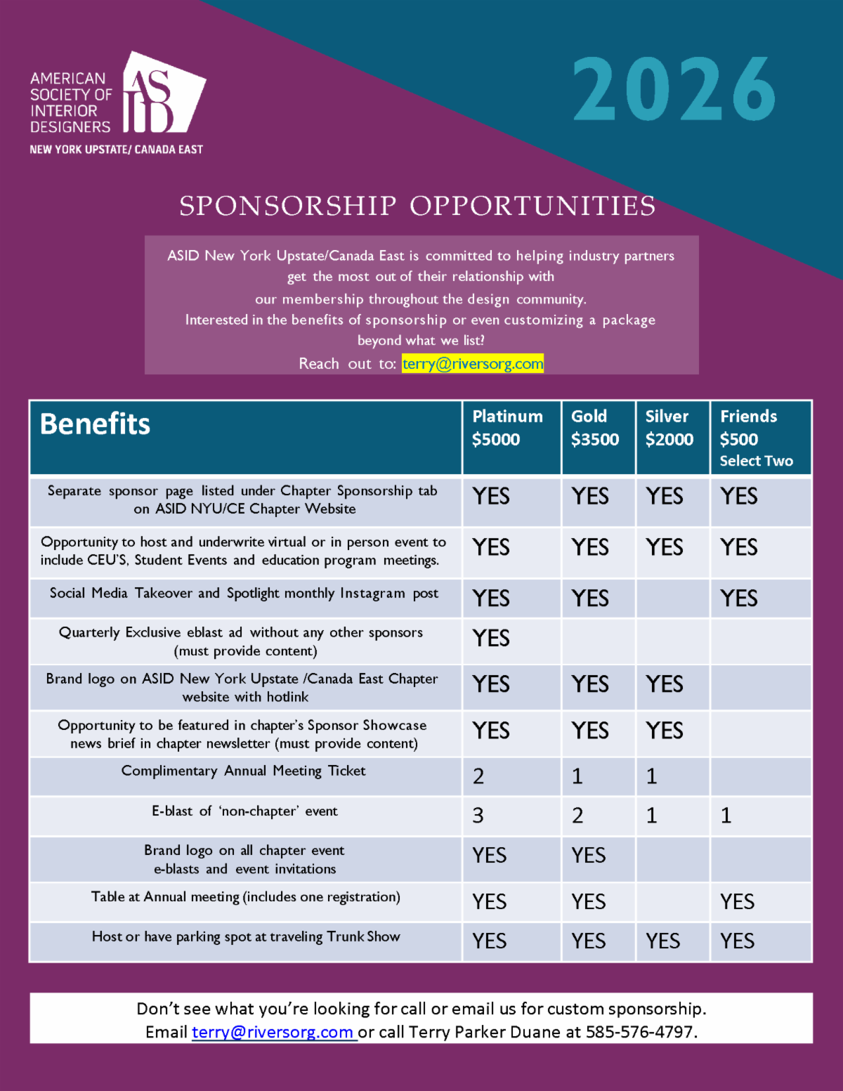 ASID New York Upstate/ Canada East is extremely excited to announce our fiscal year 2026 Sponsorship Opportunities!
